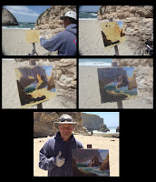 I thought I'd watch Scott paint his demo on the first morning at Shark Fin Cove, since he decided to paint the view that attracted me. Unfortunately, by the time he finished, the light had changed too much; I wasn't interested in painting it any more.